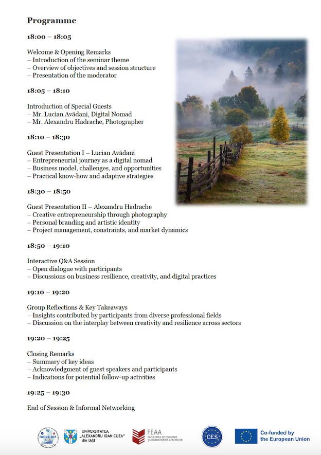 In conclusion, the seminar reinforced that project management is an indispensable foundation for organizational resilience and that universities play a central role in cultivating these competences. By integrating structured planning, flexible execution, and reflective learning, young professionals can significantly enhance the ability of Romanian businesses to thrive in a complex European context.